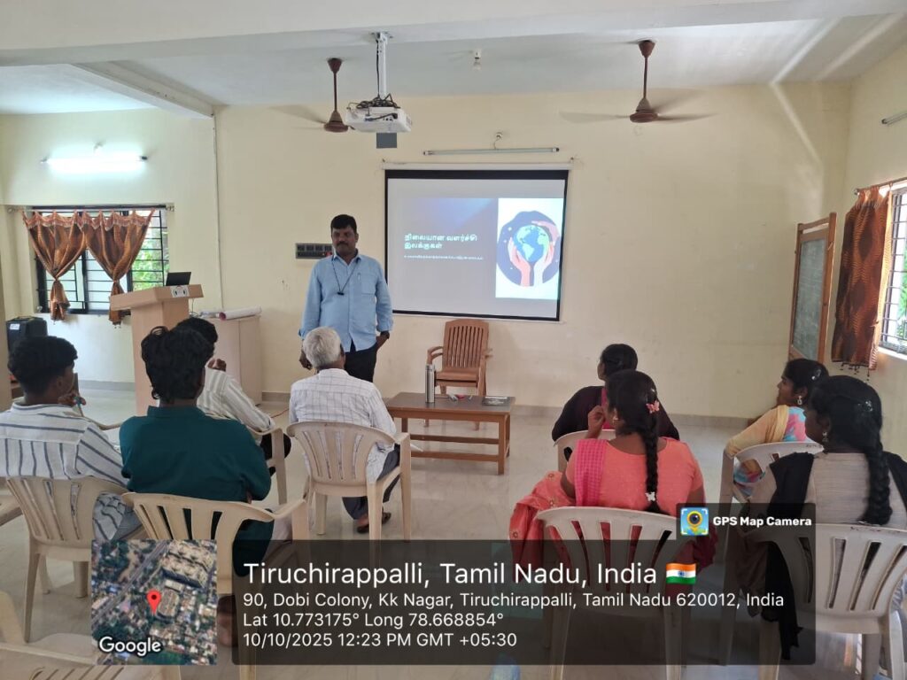 A three-day Advance Module Training on “Globalization, Privatization, and Liberalization” was conducted as part of the Capacity Building Training for Rural Youth in Trichy, Tamil Nadu. The program was organized by the Indian Social Institute, Bengaluru, in collaboration with local NGOs from the Trichy, Puducherry, and Salem zones. A total of 20 enthusiastic young participants took part in this transformative learning experience. Through interactive sessions, group discussions, and reflection activities, they explored how globalization and economic reforms influence society, culture, and livelihoods, especially in rural contexts.