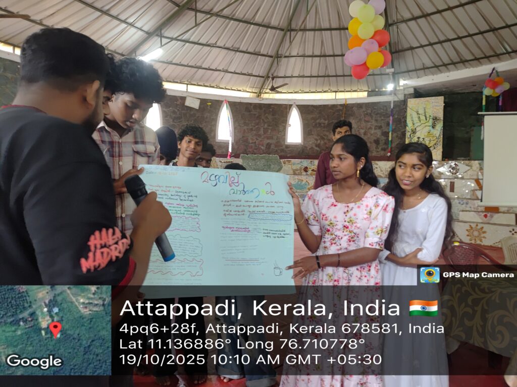 Youth Action toward Resilient Communities Module IV – Understanding and Reducing VulnerabilitiesLocation: AADI, Mattathukad, Attappady, PalakkadDates: 17th – 19th October 2025Partner Organisations: AADI, SMSSS, and AKADSResource Persons: Mr Kanda Swami, Mr Kaliswami, Fr. Lenin Antony, Ms Shanthamani, and Ms EswaryYouth Participants: 47 (Male -27, Female – 20) The three-day Capacity Building Training for Youth was […]