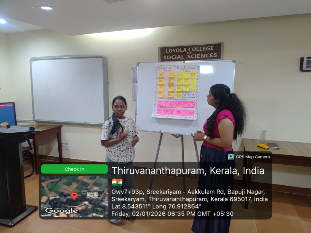 The final sessions, facilitated by Dr. Aby George, focused on governance and lived experiences. Participants reflected on issues of discrimination, inclusion, and accountability, strengthening their understanding of people-centred and inclusive governance. Overall, the programme enhanced participants’ confidence and clarity regarding democratic participation and accountability. Anchored in participant feedback and practical learning, the training equipped youth with the knowledge, skills, and perspectives required for active citizenship and grassroots social transformation.