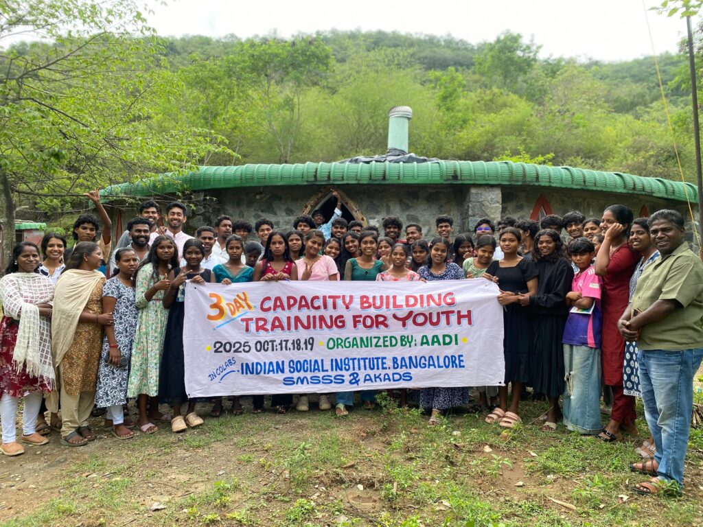 The three-day Capacity Building Training for Youth was organised by AADI in collaboration with ISI Bangalore, SMSSS, and AKADS, with the central theme of Social Justice. The training created leadership skills, awareness, and participation among tribal youth in community development. It emphasised rights-based learning, teamwork, and inclusive values, empowering participants to promote equality and justice in their communities.